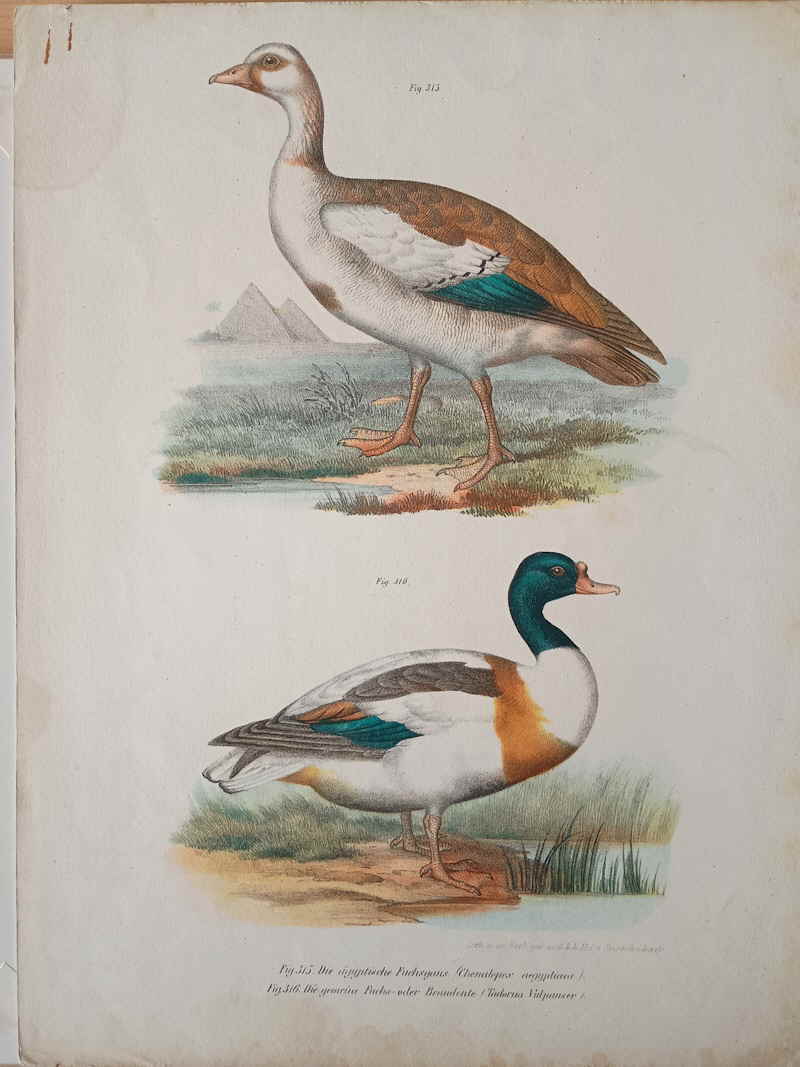LarventaucherGemeiner SchneidentaucherDie ägyptische FuchsgansDie gemeine Fuchs- oder BandenteUm 1864 LithografieBlattmaß: 24,2 x 31 cm Preis. Beide Lithografien 12 Euro